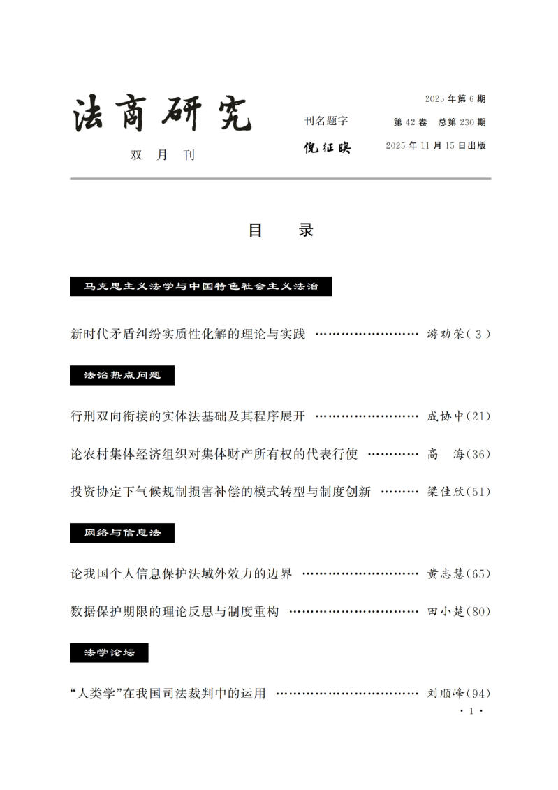 编辑出版:中南财经政法大学《法商研究》编辑部